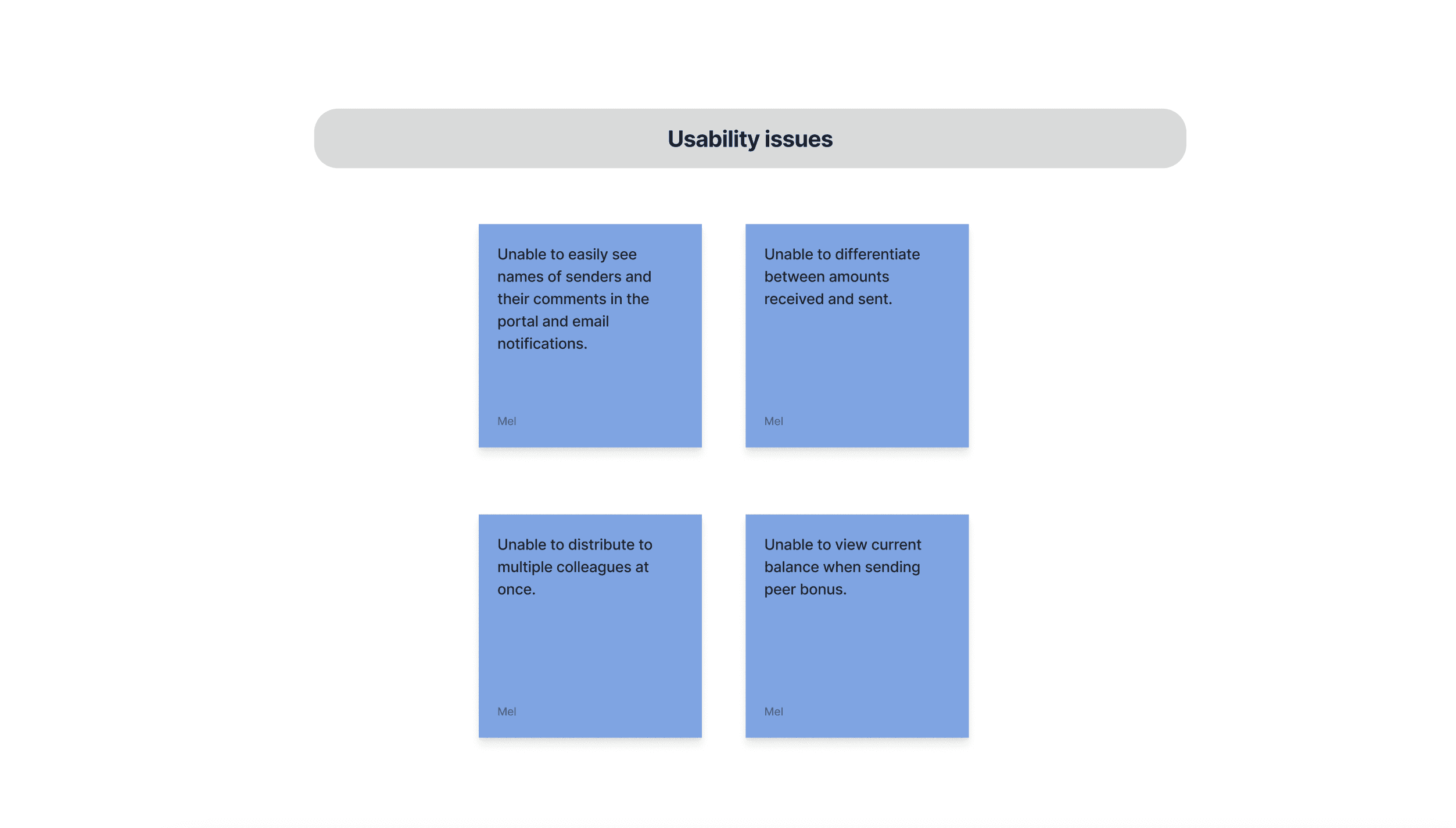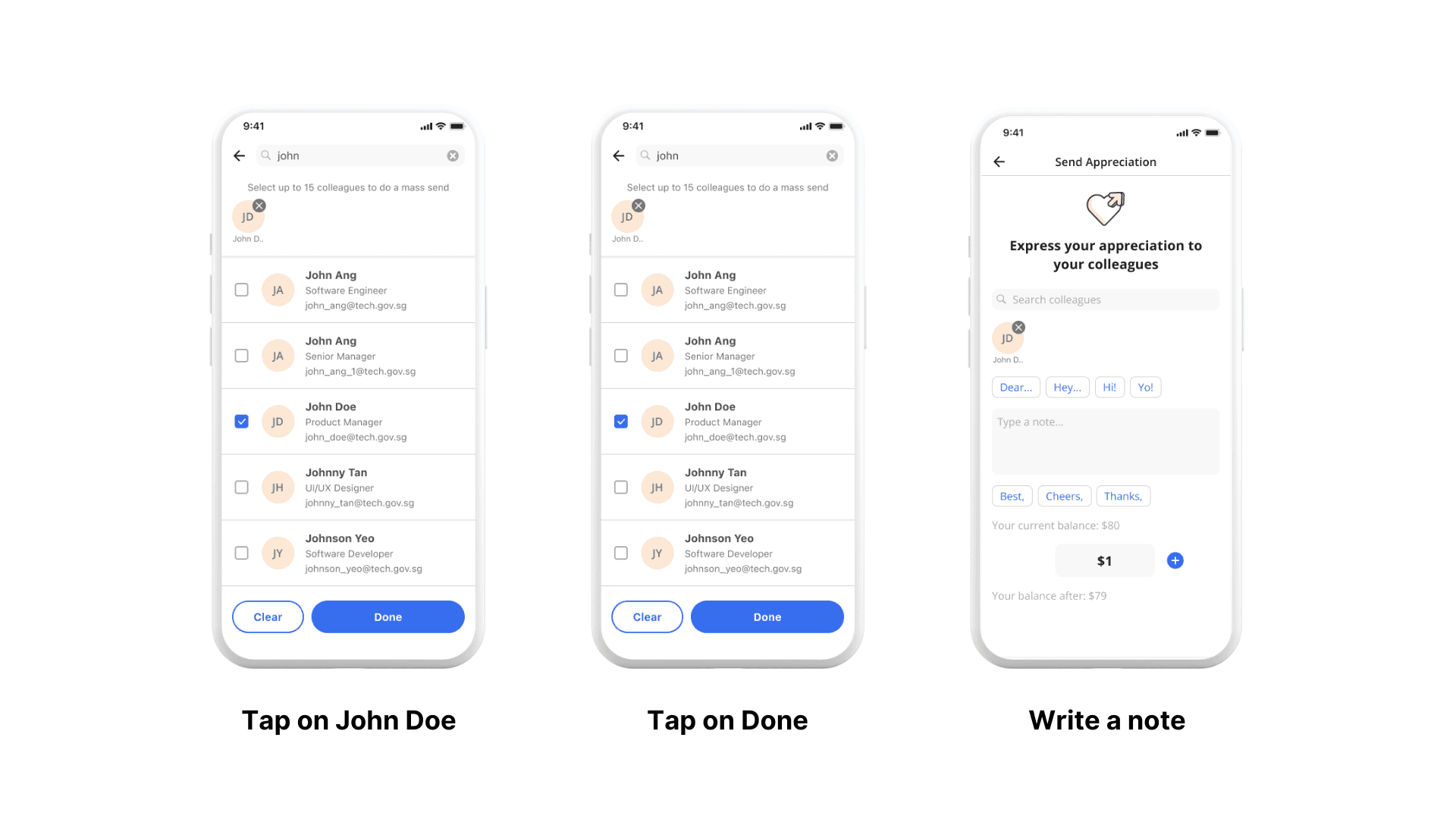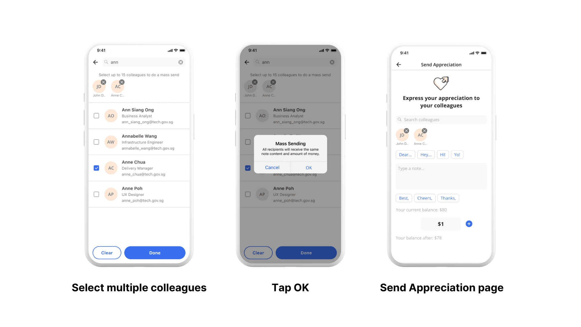 During my previous internship with GovTech, I was involved in the revamp of the Peer Bonus programme, a peer-to-peer cash reward programme. Peer Bonus was introduced with the objective of empowering public officers to recognise their colleagues who have been collaborative and contributed to their success.
